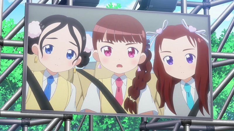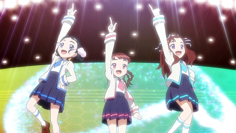 | On the school roof, Youka, along with her crutches, leans on the railings when Misaki approaches from behind. Feeling down, Youka tells her that she is unable to perform as well anymore because of her leg injury but Misaki begs to differ, saying South2 would be incomplete. However, Youka says that the South2 with only Misaki, Kurea, and Kira is perfect as is. She walks away looking down, leaving Misaki behind. As class ends, A.I warn her that if she lazes around she won't be able to get enough Girls Points to stand on the Girls Arena stage. Toa asks her what Girls Points (GP) are anyway, to which she explains that they are points that allow you to stand on the Girls Arena. Toa wonders who gives out the points, letting A.I smirk and explain that it is the A.I's on their phones who give it to them. So the points that Toa gathers, A.I Toa will tally, so they have to listen to everything the A.I's say. Toa exclaims that she will work hard to collect the Girls Points.