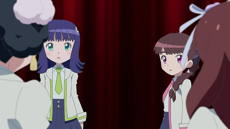 | Upon being called unexpectedly on stage, East2 decides to perform their song Nee!. The audience is quickly drawn onto them and they start giving East2 Girls Points. During the performance however, South2 comes to the event late, only to be greeted with East2 performing on stage with everyone enjoying their songs. After their performance, Kurea states that East2 saved them there to which Misaki agrees to. Misaki adds that instead of being completely perfect, South2 is being a complete failure. Upon hearing this, concern arises from Kurea and Kira's faces. Hiding in the crowd is Youka, mumbling to herself what she's even doing.