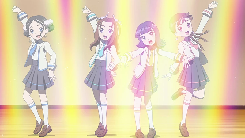 | While running towards the school hall, Toa makes it in time and enters the hall and sees South² performing their song "Shining You Shining Me yume no chikara de". Toa is mesmerised by their performance but quickly realizes that Youka isn't performing with them and wonders if it's because of her leg injury. After the performance, South²'s Misaki announces to everyone that this year's "Girls Activities" are underway and the crowd goes wild. After announcing that, Misaki looks at Youka, who is hiding in a dark corner, far away from everyone else.