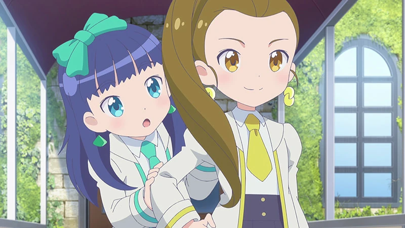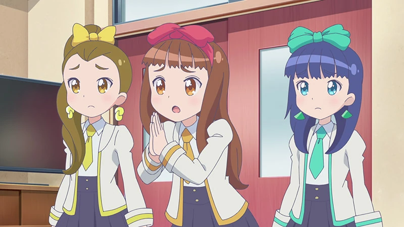 | Toa contemplates having to search for members again on a bench but she states that she's beginning to like East2 and wonders if there are any other groups like that. A.I Toa tells her that there is and begins to explain how there are girls all over the nation who attend the school. She proceeds to encourage Toa to practice so that she can stand on the Girls Arena stage, Toa agrees to say she wants to shine like South2 and their member Youka. A.I Toa teases her saying she can't do that yet. Class begins but she's distracted, thinking about South2 and wondering if they're practicing. She continues to imagine what it would be like if Youka was her teacher, teaching her to make up and dance. Then wondering if she'll be able to perform one day with her. | ||