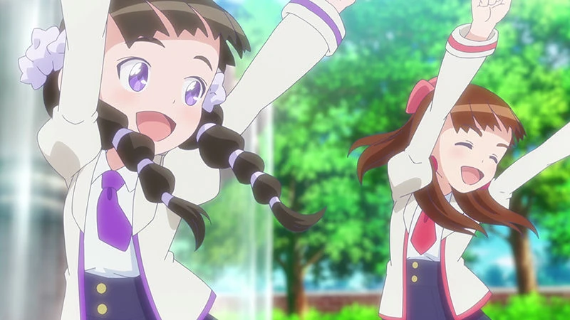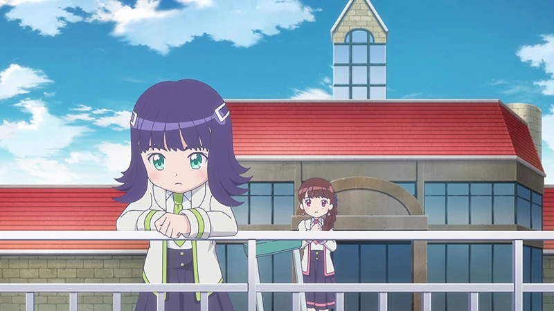 | At the school garden, Toa sits on the bench thinking about South2's performance and wonders why Youka wasn't there. She proceeds to think of a variety of reasons as to why. Asking A.I Toa if she knew, the A.I searches the internet and finds rumors about Youka and Misaki's conversation where Youka wants to leave South2. Toa is worried that the rumors are true. Watching them is their teacher. Entering the garden, two girls speaking in Kansai dialect appear to Toa. Not knowing who they are, the two introduce themselves as Momoka and Minami, members of the unit west2.